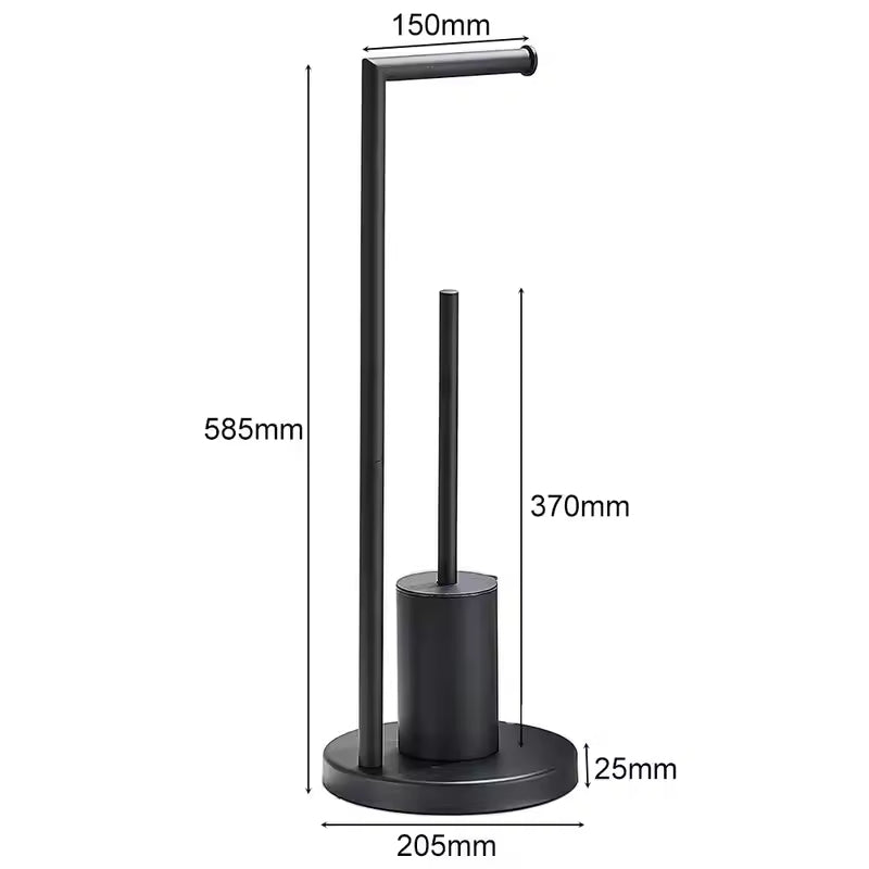 Der freistehende Toilettenpapierhalter mit Bürstenständer bietet eine praktische Möglichkeit, Badezimmerutensilien an einem Ort organisiert zu halten. Mit einer kompakten Struktur kombiniert er einen Toilettenpapierhalter und Bürstenhalter in einer einzigen freistehenden Einheit. Dieses platzsparende Zubehör trägt zu einem ordentlichen Bad bei und verleiht einen sauberen, modernen Look, der sich leicht in verschiedene Einrichtungsstile einfügt.