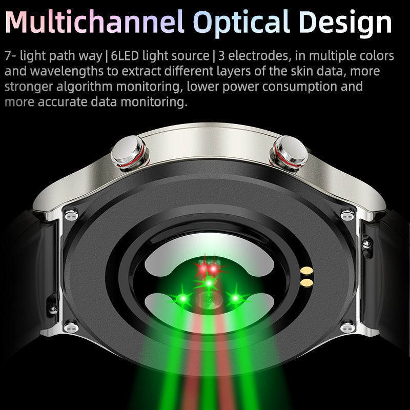 Blijf op de hoogte van je dagelijkse wellness met een slim horloge dat is ontworpen voor activiteitsregistratie en gezondheidsinzichten. Volg belangrijke metrieken zoals hartslag, bloedzuurstof (SpO2), slaaptrends en ECG-golfvormregistratie direct vanaf je pols en in de begeleidende app.