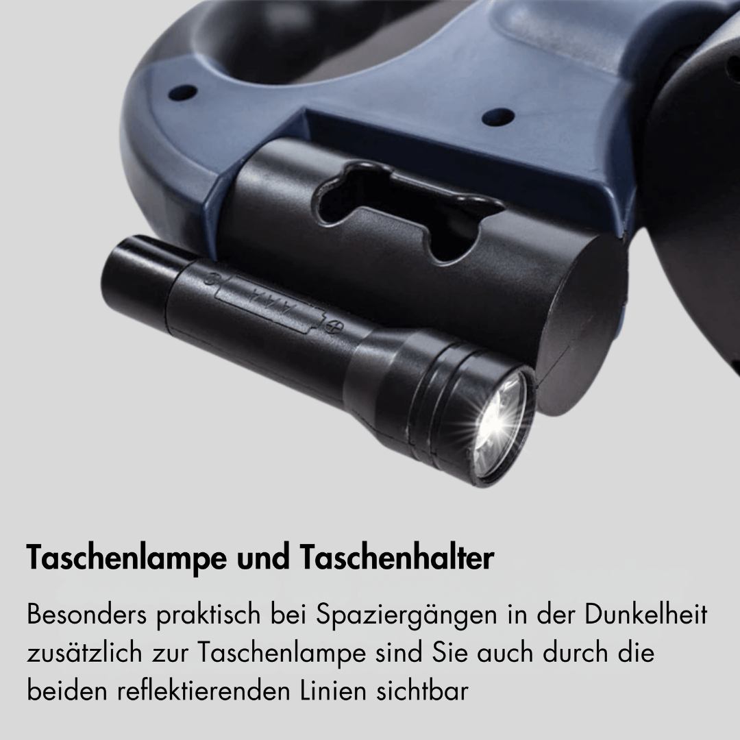 Each lead includes its own stop and lock button, allowing you to manage one dog at a time or both together. This independent braking system provides more precise handling during crossings, crowded spaces, or training moments. The built-in flashlight adds visibility in low-light conditions, making evening or early morning walks more convenient.